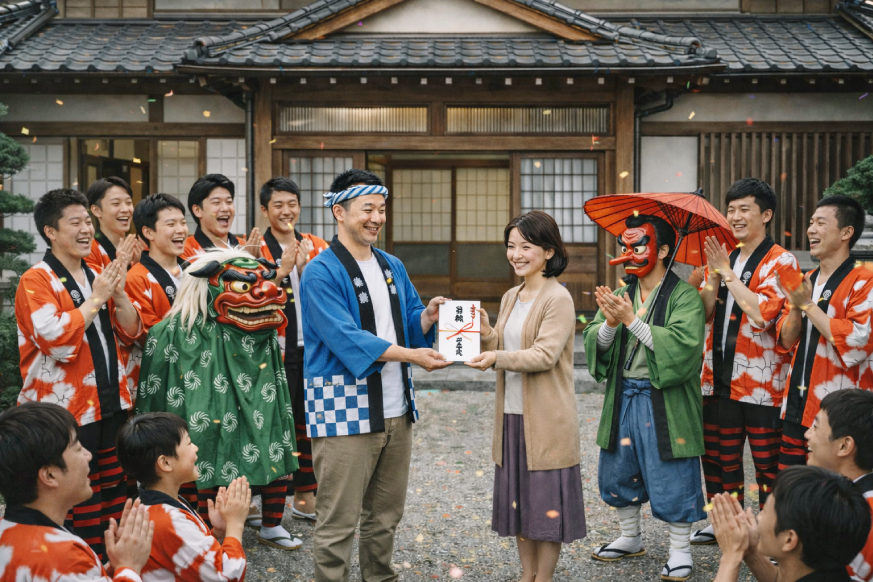 地域の伝統文化を支える寄付を行うと同時に、自分の家の喜びごとを近所に知ってもらう、地域交流の役割も果たしています。