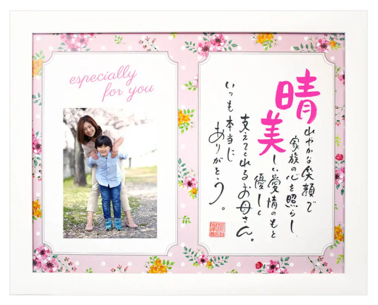 似顔絵付きタイプや写真も一緒に飾れるタイプ、マットデザインやフレーム色が選べるタイプなど、お好みに合わせてお作り致します。