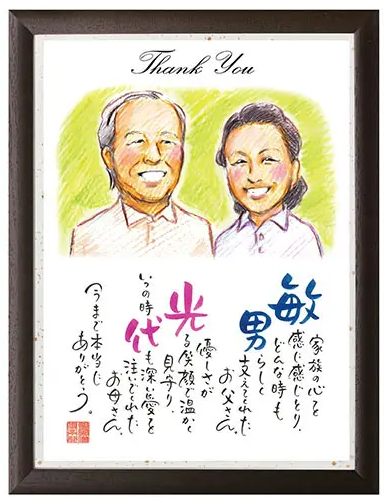 二人三脚で頑張ってきたご夫婦への贈り物には、お二人のお名前をお入れしてお作りするタイプもおすすめです。