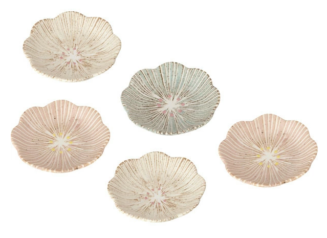 さくら型の小皿は、春におあつらえ向きのやさしい色合い。